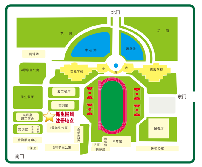 ▲北校区新生报到注册地点示意图