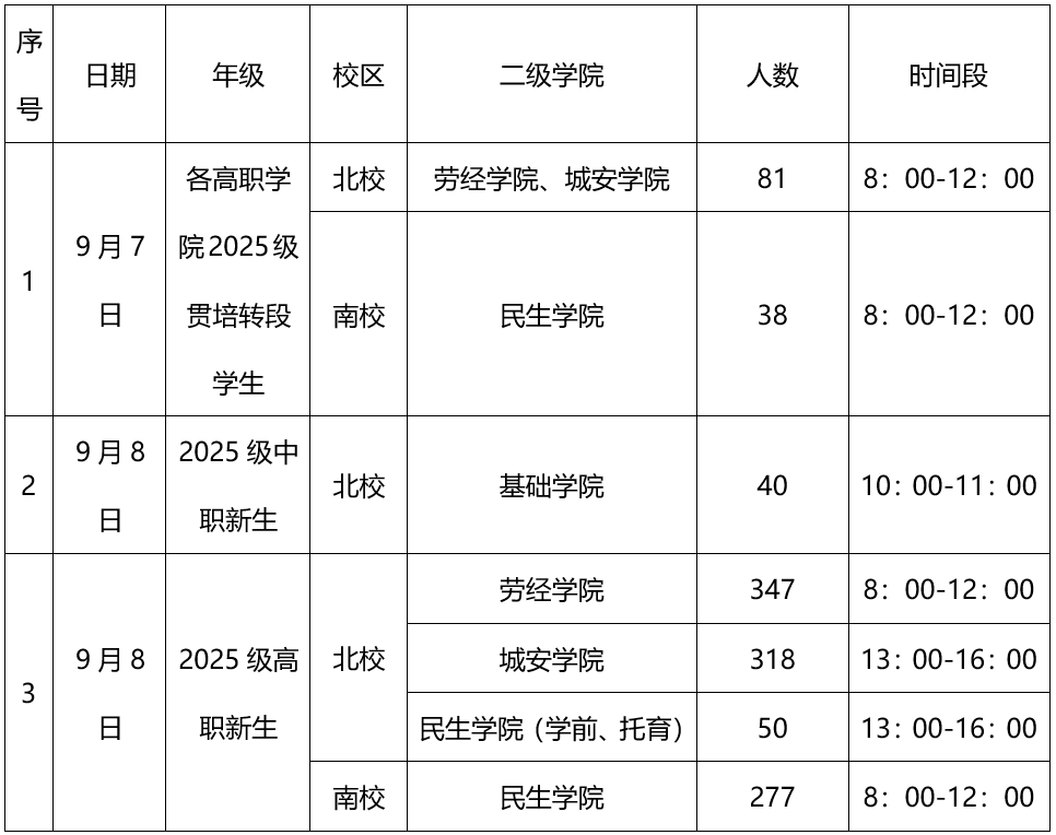 1. 2025级各高职学院贯培转段学生9月7日到校报到