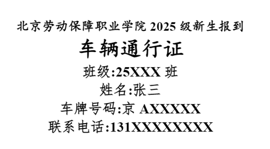3.开学报到当日,校门处将配备志愿者,做好新生接待工作。新生报到时北校区学生(南校区家长不入校)如需自驾送行李入校,请学生本人于9月7日12:00前在钉钉迎新系统内完成信息采集,提前登记到校信息填写自驾车牌号,并自行用A4纸打印通行证(见图1),进校车辆从北门进校自南门出校,需听从校方工作人员指挥,放下行李后尽快驶离学校,家长及亲友不进入校内各楼宇。