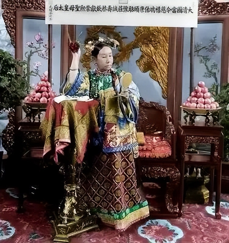 慈禧爱照相,大家都知道,小编也知道。照片中慈禧很少拿“道具”,都是站立直视镜头的,有“道具”是少数。这两张就是很难得一见的照片,注意看,注意看,慈禧手里有镜子。