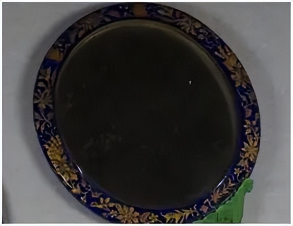 烧蓝的工艺一般用在银器上,把镜的边框用银烧蓝的工艺(蓝色矿物釉料用800度的低温烧制)显得流光溢彩、晶莹剔透。正面是一面水银镜。当时的中国很少生产这样的水银镜子,大部分都是依赖进口的呀。现在看上去还是光洁如新的。