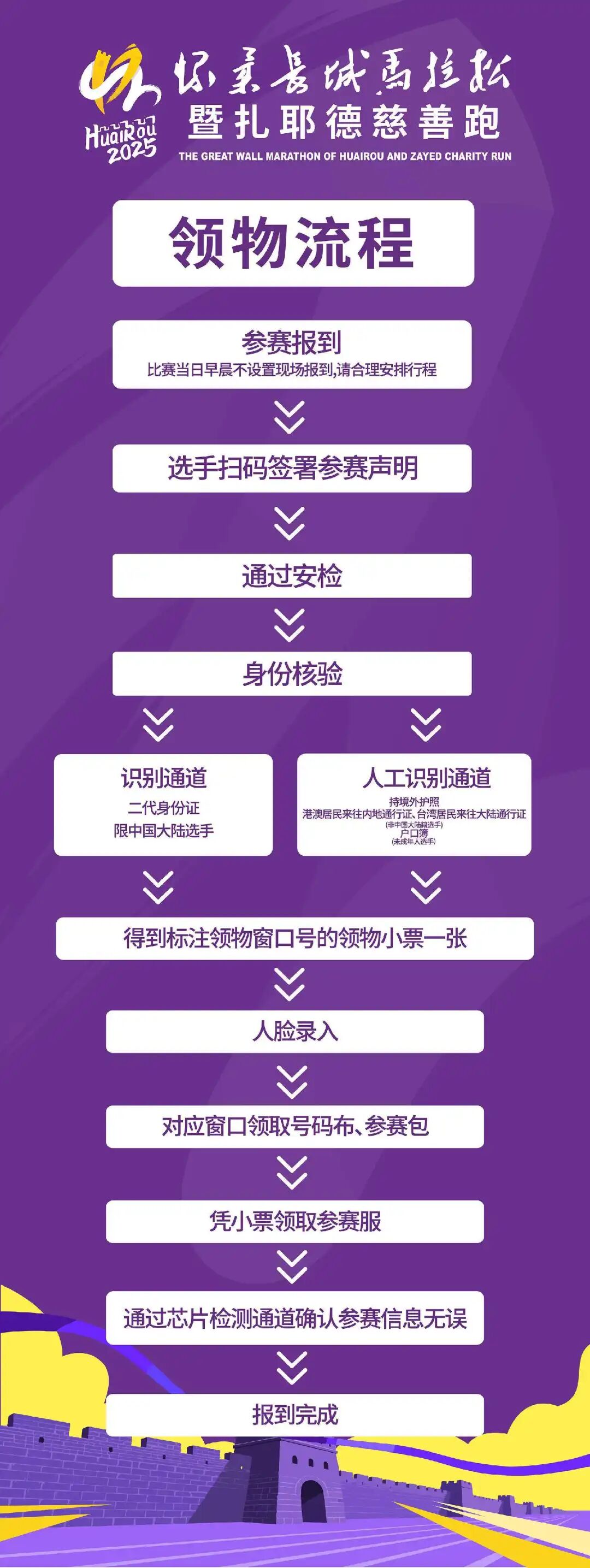 马拉松、半程马拉松,将于9月19日-20日开放领物。参赛选手必须本人携带报名时使用的有效身份证件原件到领物现场领取参赛物资并进行人脸信息采集。