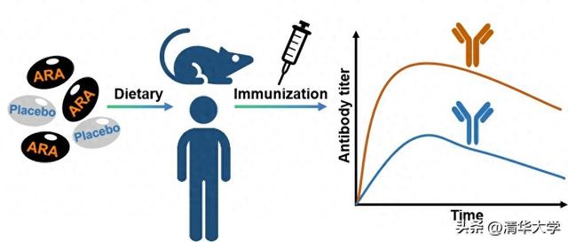 9月12日,清华大学基础医学院程功团队与合作者在《欧洲分子生物学学会:分子医学》(EMBO Molecular Medicine)发表题为“膳食补充花生四烯酸促进体液免疫应答”(Dietary supplementation of arachidonic acid promotes humoral immunity)的研究成果。该研究利用动物实验及随机对照人体临床试验揭示膳食中补充花生四烯酸(Arachidonic Acid, ARA)能够显著增强疫苗诱导的体液免疫反应,快速产生高水平中和抗体,从而提供更早、更强的保护。该策略作为一种安全有效的营养辅助手段,在应对突发传染病和改善现有疫苗方案方面具有巨大潜力。