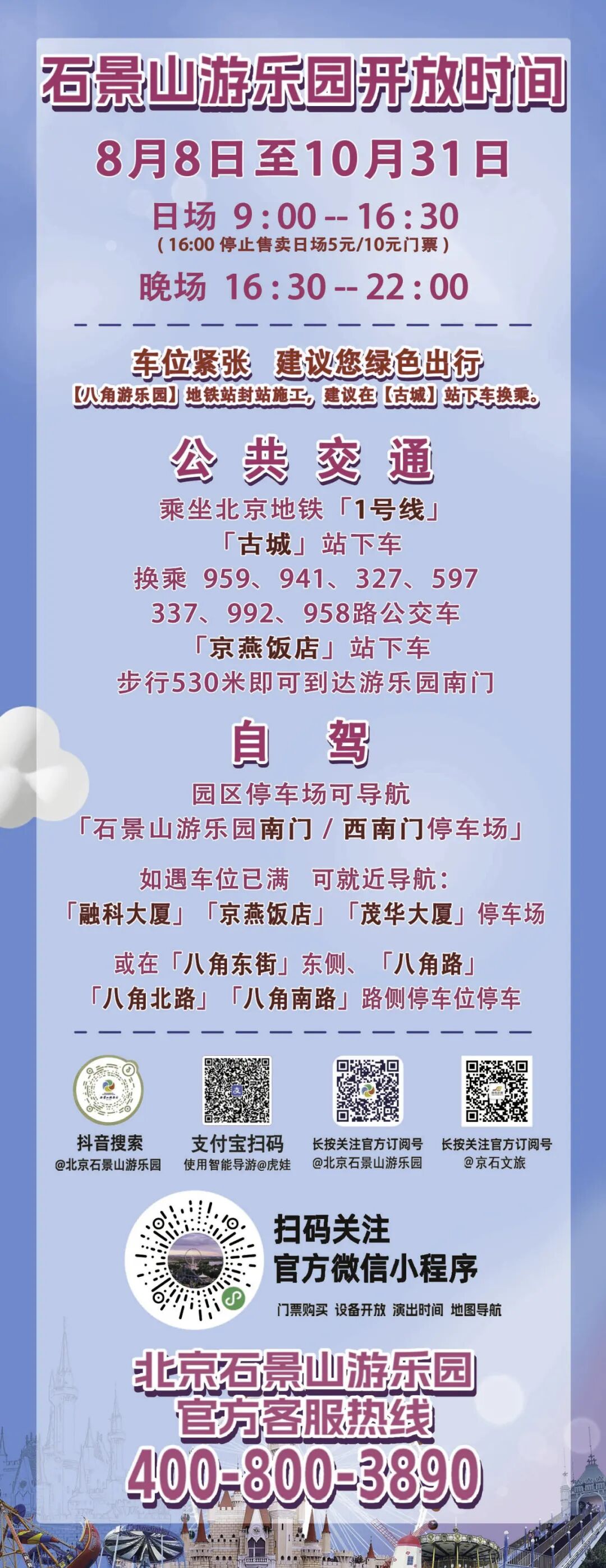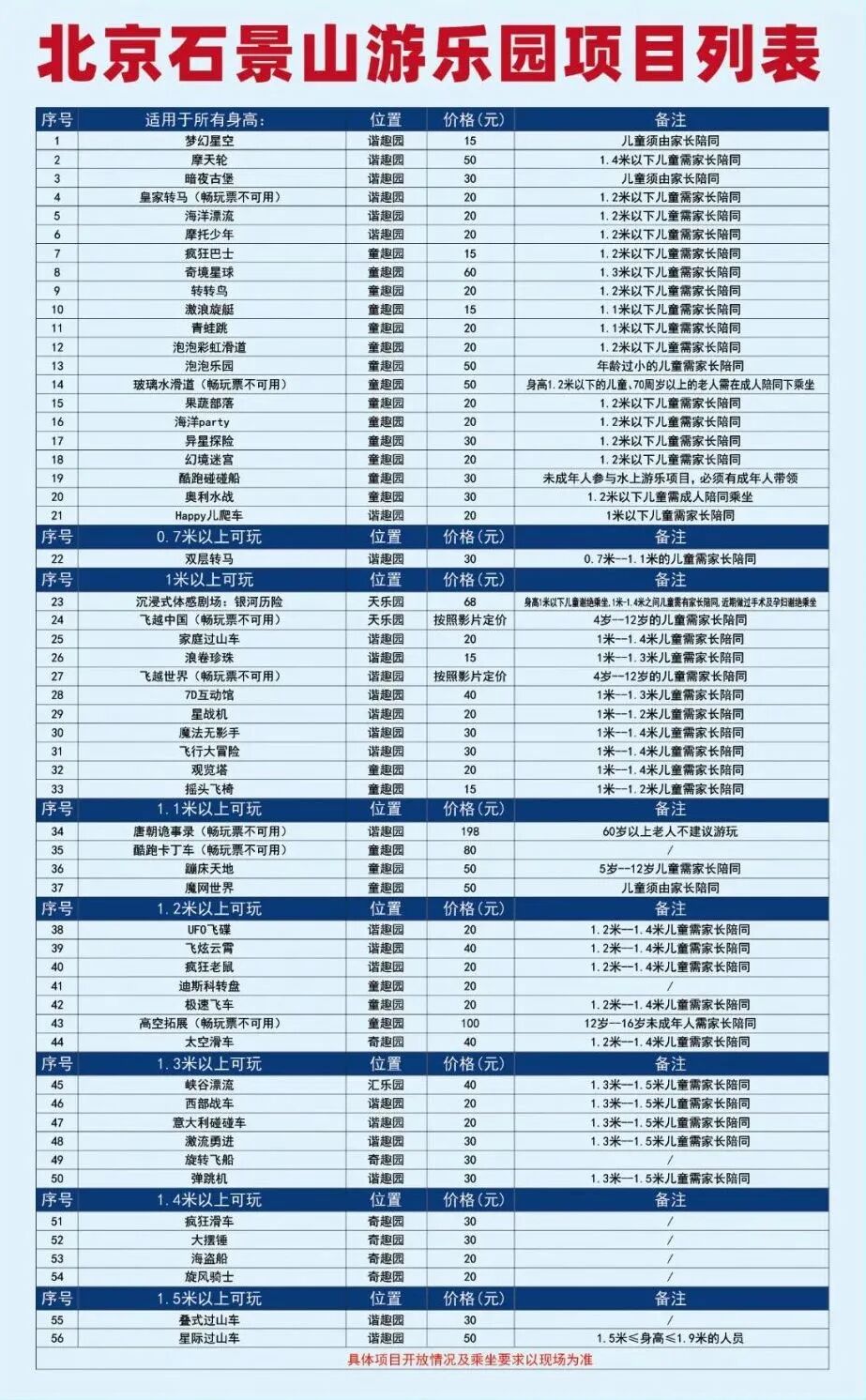 10月安排详见“北京石景山游乐园”发布