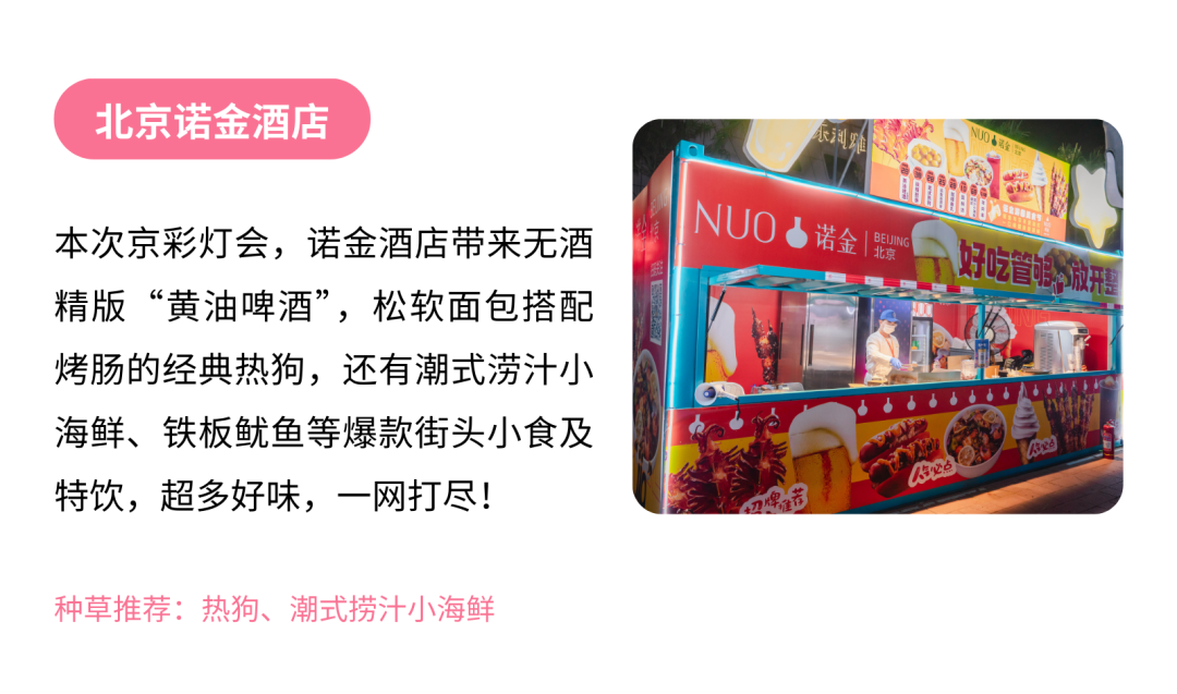 还有王府井集团、北京饭店 、北京贵宾楼饭店、北京新侨饭店·新侨三宝乐面包店、北京马克西姆餐厅、东亚春等品牌餐饮亮相本次灯会。更多未能一一细说的美味,就等你亲自来现场打卡发现了!