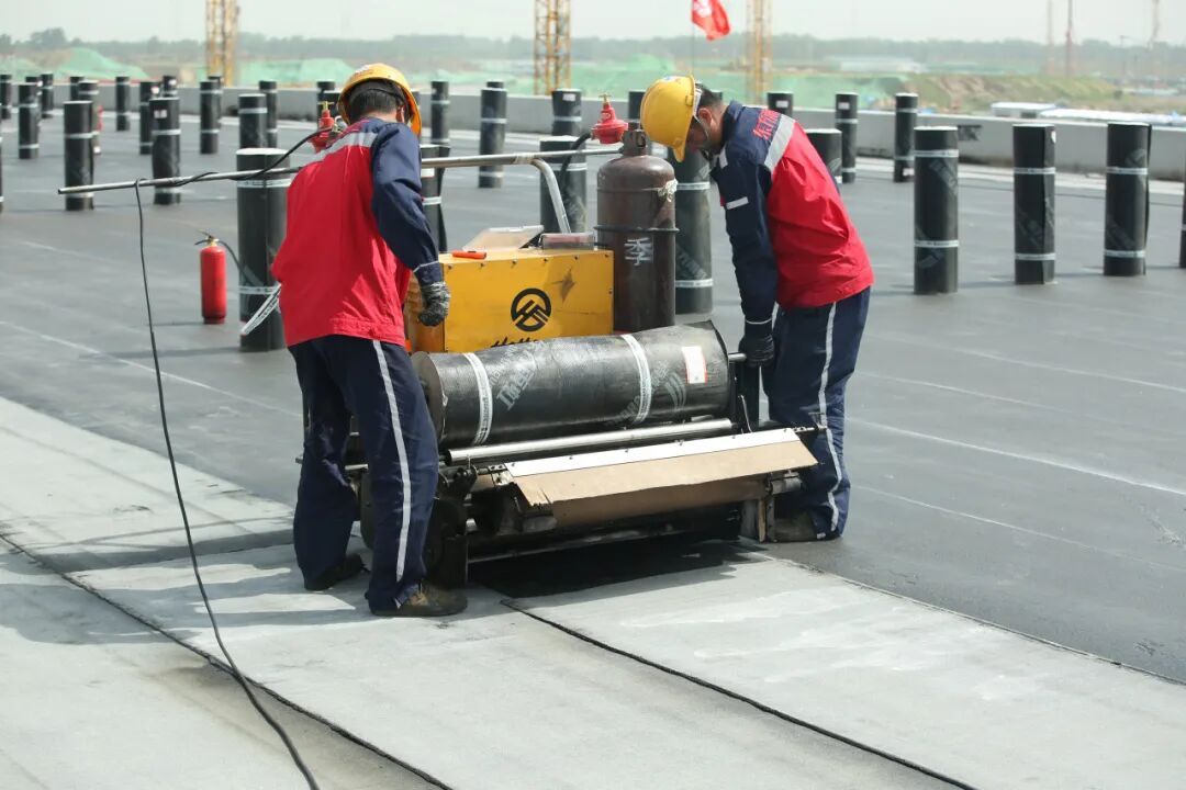东方雨虹防水卷材智能建造施工现场。