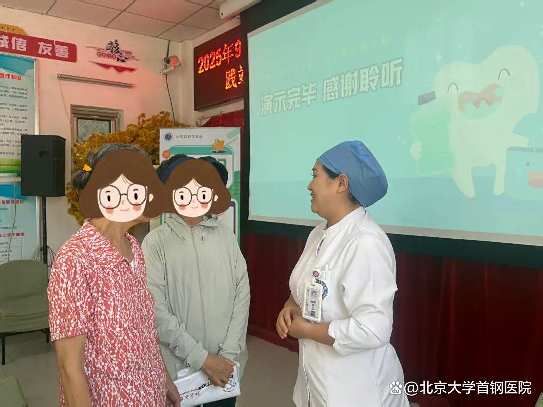9月18日下午,在第37个“全国爱牙日”即将到来之际,北京大学首钢医院医事服务部联合口腔科,走进西黄新村社区,开展了一场以“减糖控体重·护牙促健康”为主题的口腔义诊宣传活动,增强居民口腔保健意识,提供专业便捷的口腔健康服务。