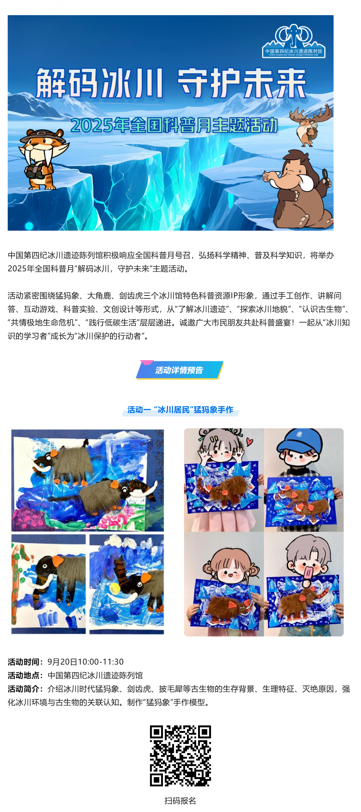 全国科普月活动预告丨冰川馆“解码冰川,守护未来”主题活动邀您参加!