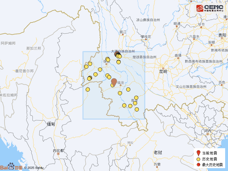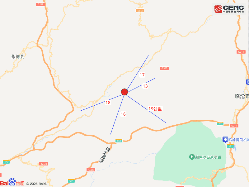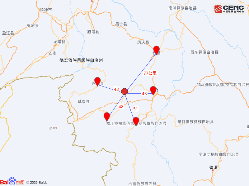 周边县城:震中距临翔区43公里、距永德县43公里、距耿马傣族佤族自治县48公里、距双江拉祜族佤族布朗族傣族自治县51公里、距云县77公里,距临沧市44公里,距昆明市334公里。