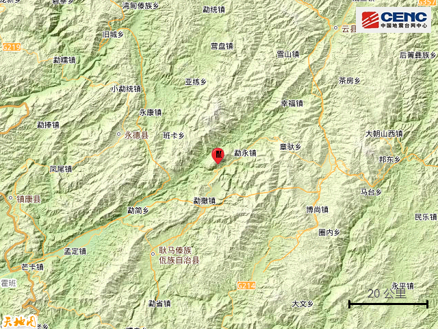 附近村镇:本次地震周边5公里内的村庄有香竹林村、河底岗、大洼子地、岩子脚、大洼子山、河底岗新寨、耿马县勐永镇香竹林村大寨子组、板桥、张听、勐永镇板桥组,20公里内的乡镇有勐永镇、勐撒镇、大兴乡、崇岗乡、大雪山彝族拉祜族傣族乡。
