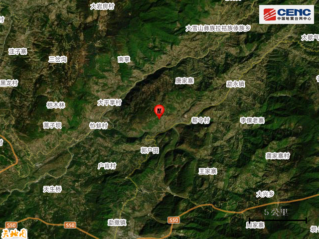 震中地形:震中5公里范围内平均海拔约1353米。