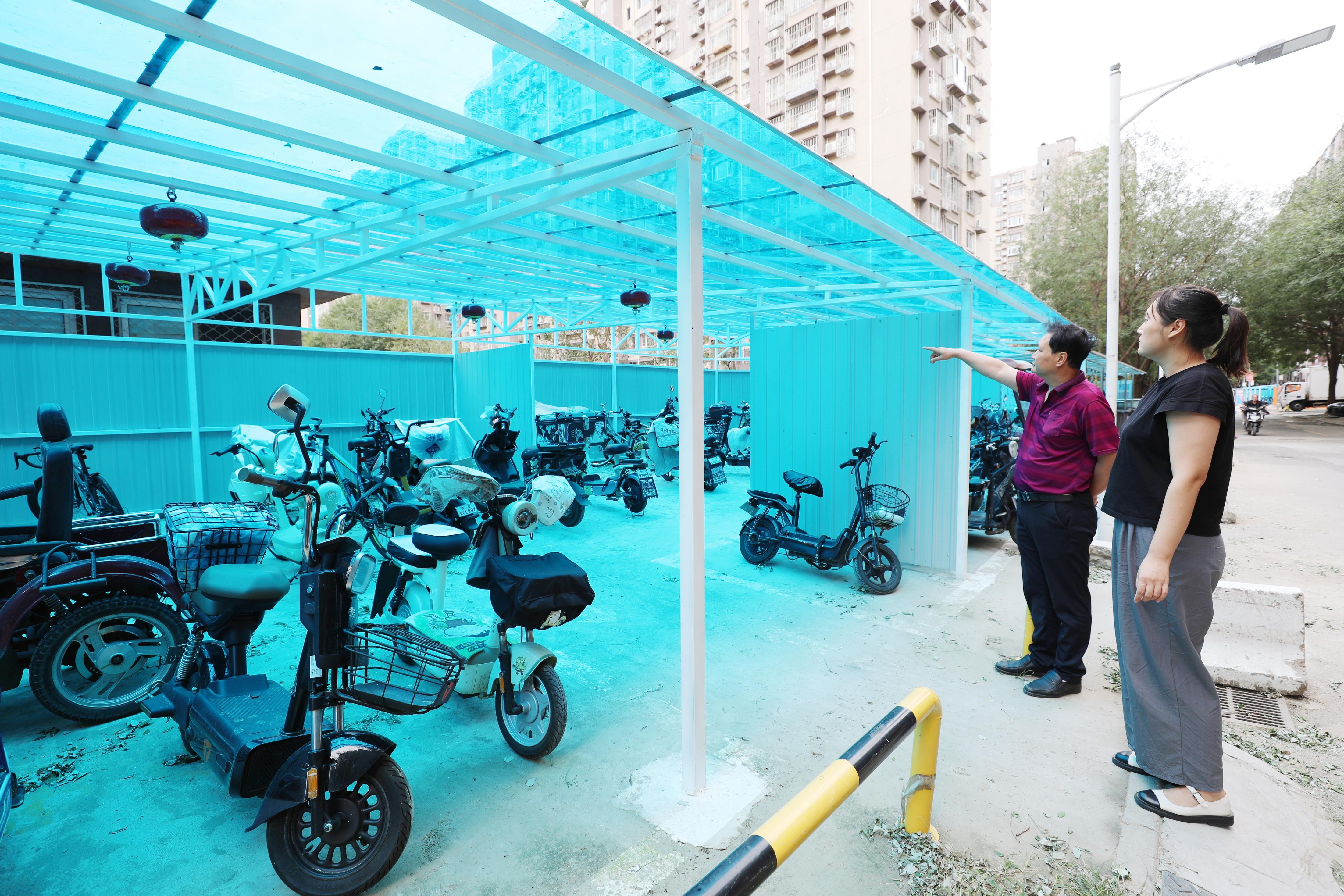 “小区里可利用的空间十分有限,车多位少,我们就想办法‘挤’出来,在方寸之间做腾挪。”南苑街道南庭新苑北区社区党委书记王冠玉介绍,新增的两处便民停车棚的前身为闲置空地,社区通过环境整治,规范机动车停放等一系列举措,为新增便民停车棚“让位”,有效解决了非机动车停放问题,从而为居民营造更加便捷、安全、舒适的居住环境。