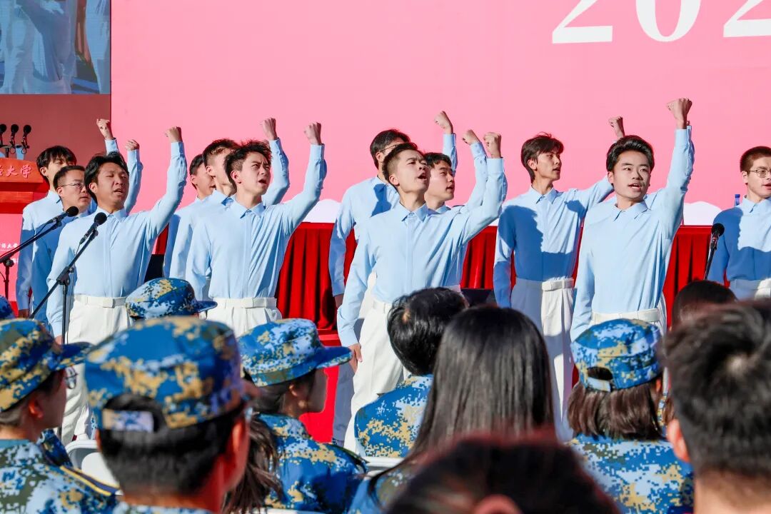 参加纪念中国人民抗日战争暨世界反法西斯战争胜利80周年大会广场合唱的同学们、校舞蹈团及军训各营为大家奉上了精彩纷呈的暖场表演。