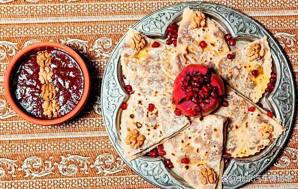 除了抓饭外,烤饼也是伊斯兰传统美食。阿塞拜疆人尤其喜欢一种名为古特伯的半月形烤面饼。其制作工艺独特,先在薄薄的圆形面饼中巧妙地填充各类馅料,再经过封口捏形,最终呈现出形似“馅饼盒子”的诱人外观,食用时搭配独特的酸奶酱,口味独特。