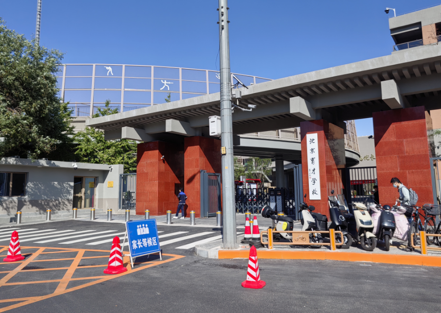 本秋季学期,位于西城区太平街与永定门西街交叉口附近的北京育才学校新址开学。为保障学校周边交通顺畅有序,西城区城管委联合交通支队、区教委、街道等部门提前谋划,多次实地踏勘精准掌握需求,通过“完善基础设施、优化交通组织、强化秩序维护”三维度发力,构建起校园周边安全、高效的交通环境,为学子求学路保驾护航。