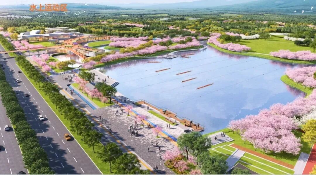 湖面一碧万顷。在设计中,邻北清路设置湖体水面并建立游船码头,在满足游客亲水的同时,最大限度挖掘溪流湖面的应用场景,拓宽公园活力。