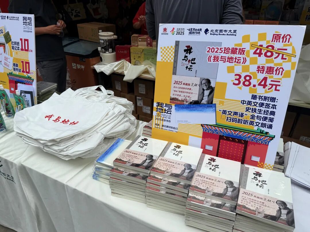 “地坛公园里应该有一家书店,让公园成为书香气最浓的地方。”“我在地坛”书店创办人彭明榜的初心,于今年5月落地——他在公园内开设“我在地坛”书店,让文学与自然温柔邂逅。本届书市,该书店带来史铁生《我与地坛》定制版、余华《活着》、莫言《红高粱家族》等名家精品;同为彭明榜运营的雍和书庭,还推出汪曾祺《人间草木》特装钤印本,这是专门联系汪曾祺家人征得同意后,用先生印章为本届书市特别制作的。彭明榜坦言,参与书市不仅为书店引流,销售额也显著提升,这份红利对实体书店是鼓励更是支持。