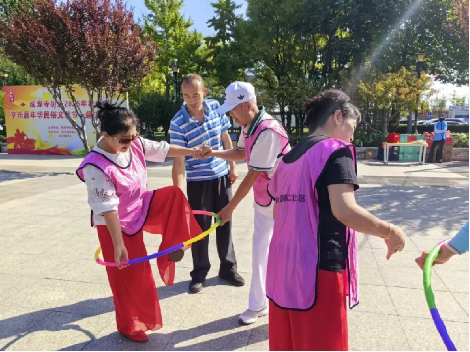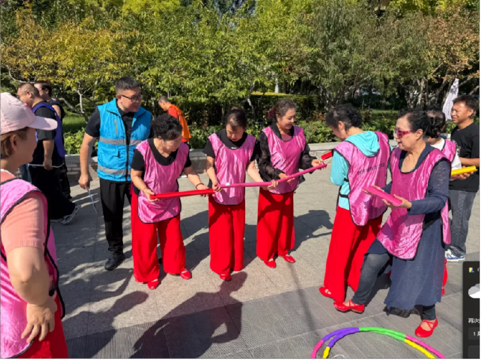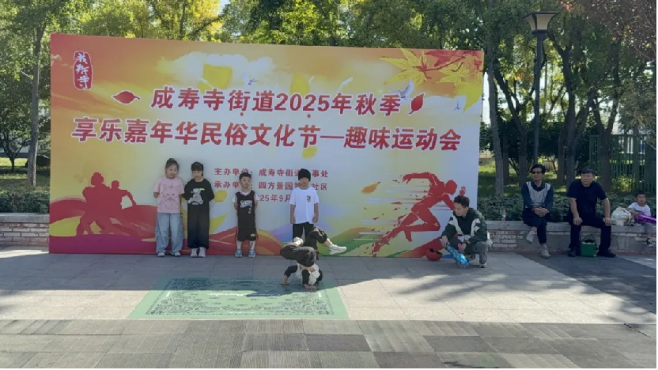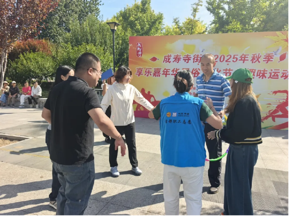 9月20日上午,丰台区成寿寺街道2025年 “四季四节” 系列活动之趣味运动会在新业广场盛大启幕。辖区各社区(村)居民及辖区单位职工共组成 8 支队伍,近百名队员齐聚一堂,现场气氛热烈,队员及观众沉浸其中,尽情享受活动带来的快乐。
