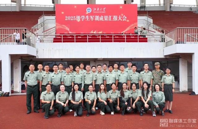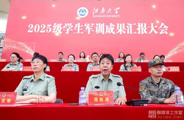 武警第二机动总队某支队大校政治委员余丹,江南大学党委常委、副校长倪松涛以及江南大学国防教育工作领导小组成员,各学院党委副书记,承训部队教官,带训辅导员,2025级全体参训学生共同参加了此次军训成果汇报大会。