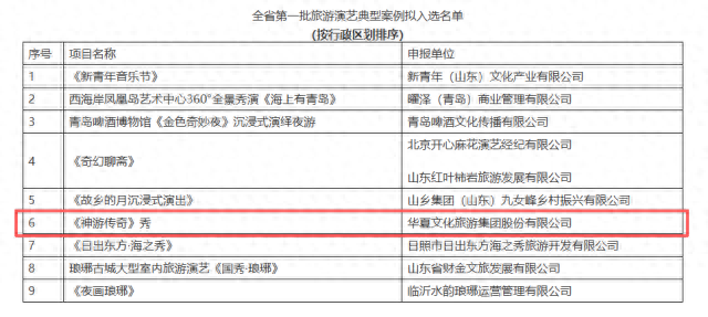 旅游演艺是实现文化和旅游深度融合的重要载体,也是扩大文旅消费的新增长点。近年来,山东省着力培育沉浸式、数字化项目类和大型音乐节等活动类旅游演艺,涌现出一批深受游客欢迎、社会效益经济效益突出的优质产品。近日,山东省文化和旅游厅公布了全省第一批旅游演艺典型案例名单,威海华夏城景区《神游传奇》秀入选,全省第一批仅9个项目入选。