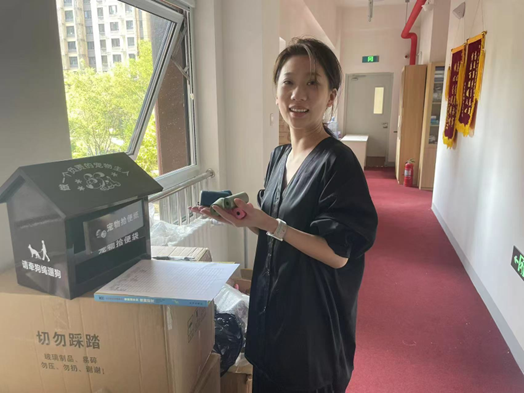社区在治理中培育居民自治力量,推动文明养犬群,形成 “自发补袋—志愿清理—互相监督”的自治生态。居民主动从家中补充可降解狗便袋,自发购买环保用品维护取用盒,践行“自己的环境自己护”;社区将积极分子转化为“文明养犬志愿者”,使文明村镇建设要求转化为常态化志愿行动;在文明养犬群内形成“分享养宠心得—提醒不文明行为—监督卫生维护”的完整链条。居民既是文明村镇建设的参与者,更是社区环境的守护者。