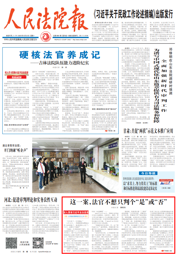 今年9月9日,该案入选北京市丰台区人民法院“三融”工作机制助推实质解纷典型案例。