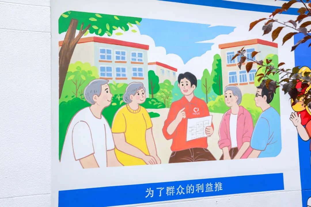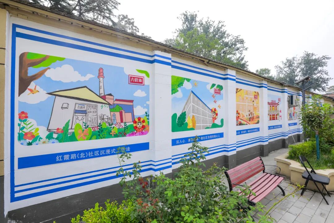 一面面的墙绘里不仅反映着街坊的生活场景,也藏着红霞路(北)社区以“沉浸式工作法”融入居民日常,为民排忧解难的“民情密码”。这些为民服务的场景,被画笔悄悄记下,成了时代变迁里最动人的注脚。