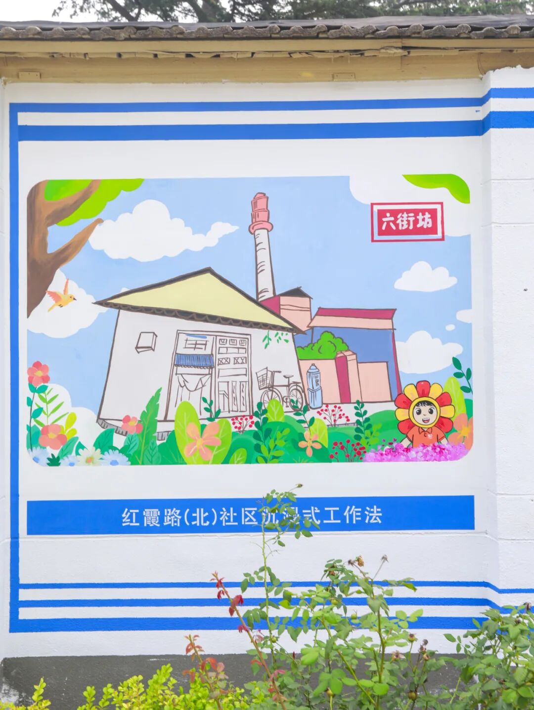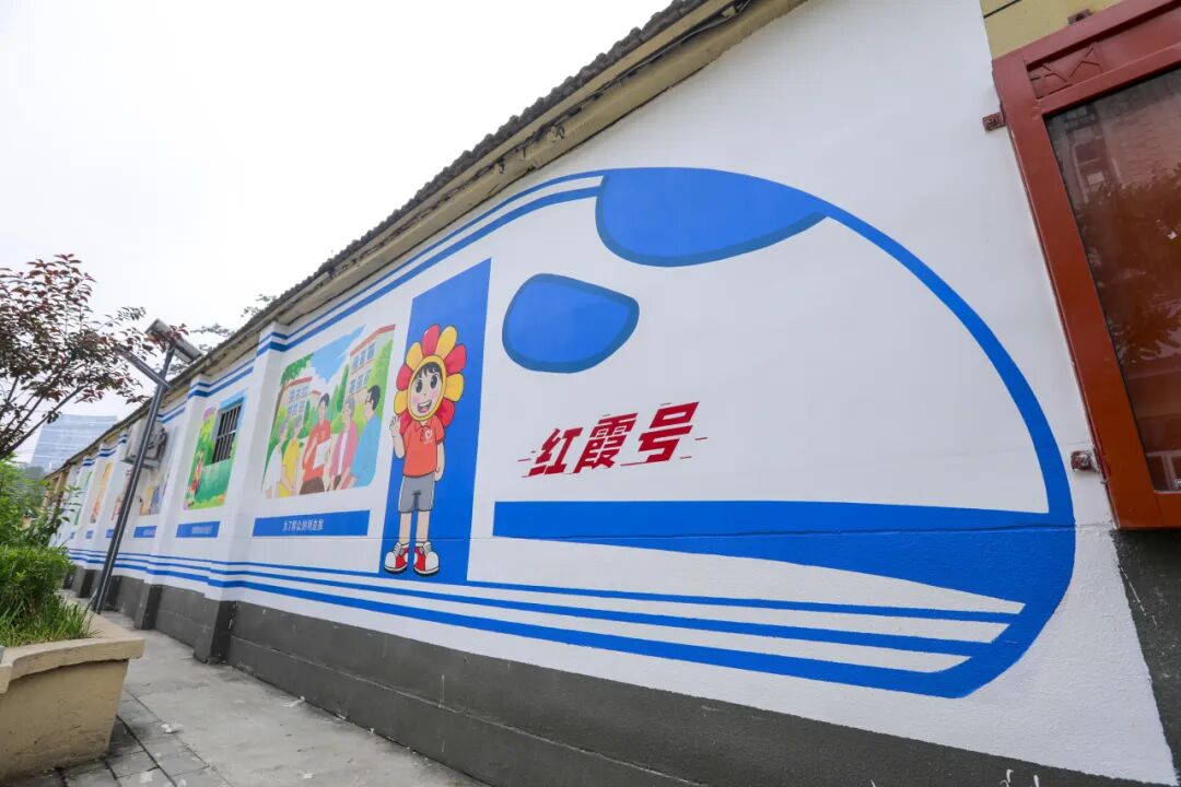 方案确定后,社区邀请到专业彩绘团队,对社区七号院的主干道两侧、居民楼外立面等多个墙面进行集中改造。墙面以社区IP形象“红小霞”为指引,具有“苏式”风格的筒子楼、红霞影剧院、大烟囱文化墙等一幅幅精心设计、主题特色鲜明的画作跃然墙上,与灰砖青瓦相映成趣,成为吸引居民驻足的风景。曾经单调的墙面摇身一变成为承载街坊记忆、彰显文化魅力的“艺术长廊”,为社区环境整治和文化建设注入了新活力。