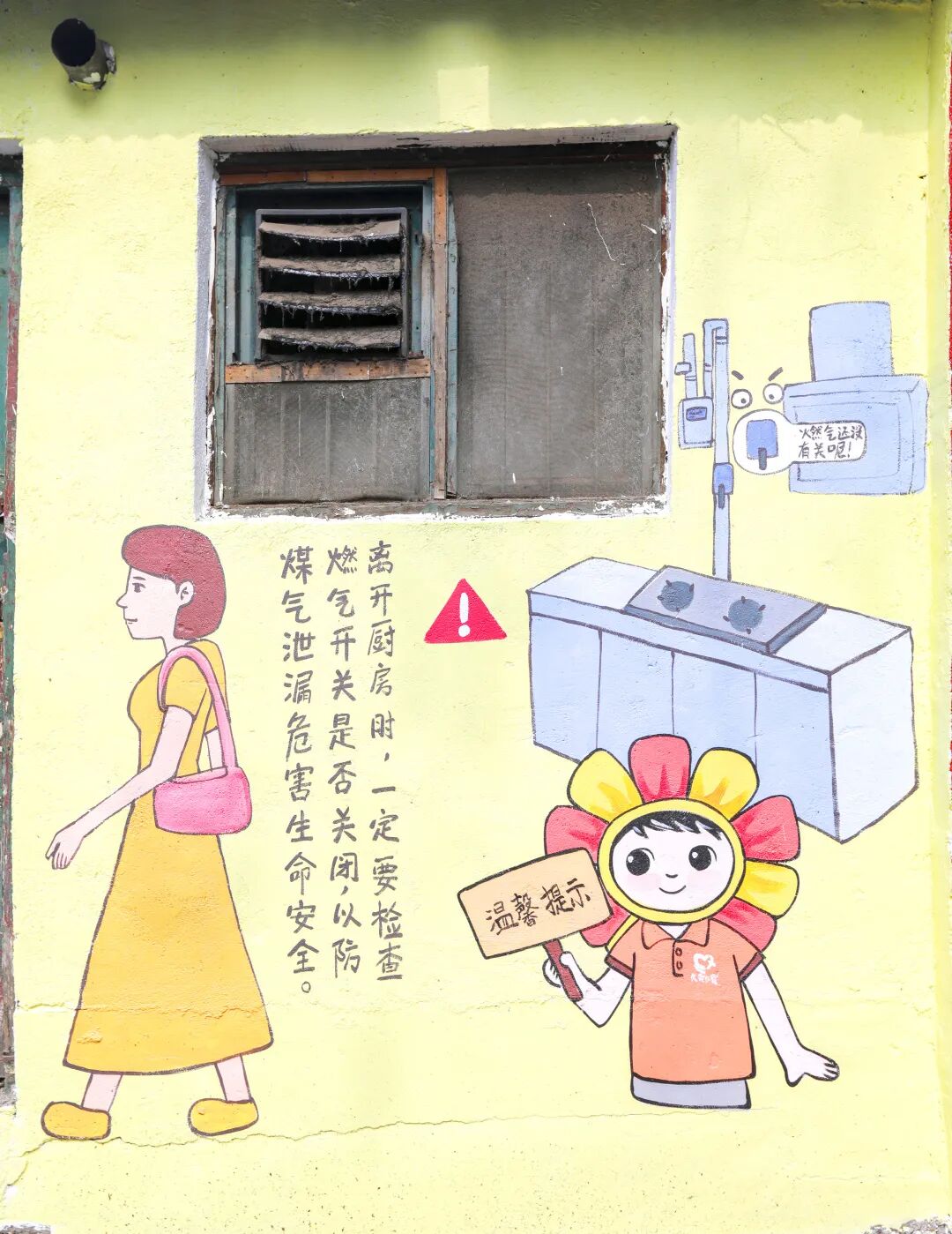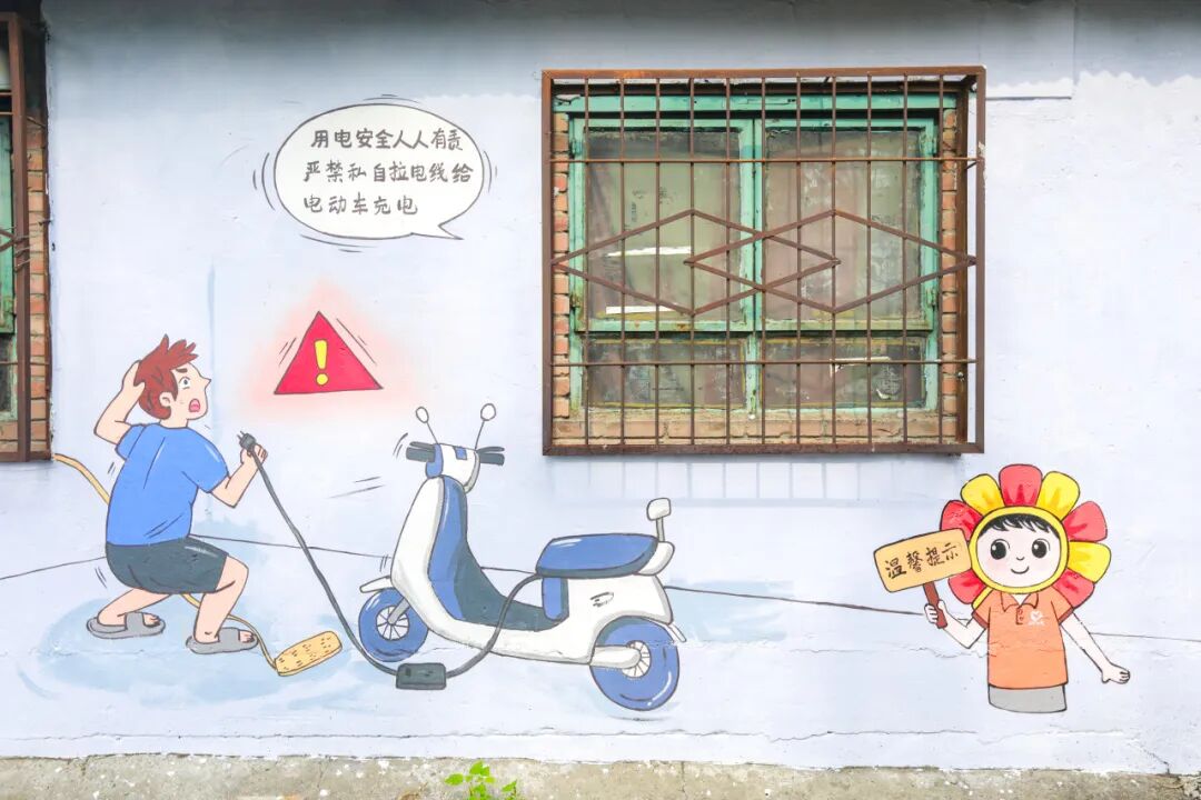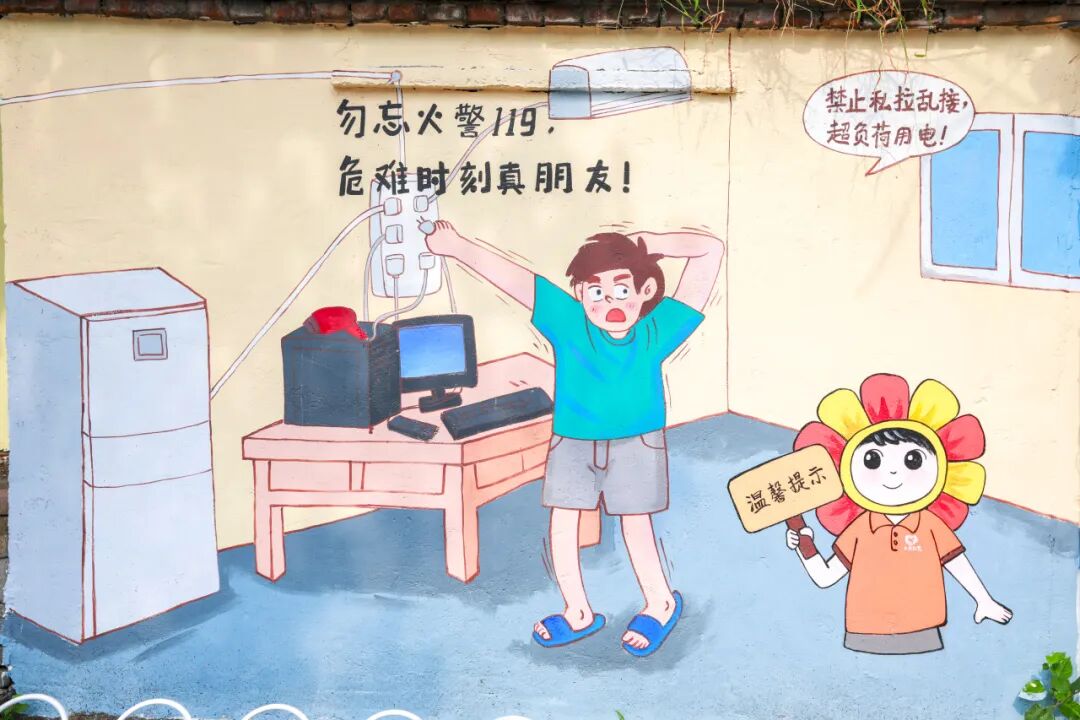 此次墙面焕新,社区还设计了消防安全宣传彩绘墙,醒目的警示标语与生动的逃生示意图融入老旧小区场景,既保留了建筑的年代感,又将安全知识潜移默化地传递给居民。“抬头就能看见,买菜路过顺道学两招。”家住附近的老街坊王师傅说道,这些嵌入生活场景的安全提示,比贴通知更能让大家绷紧“安全弦”。