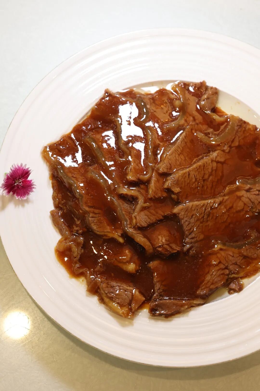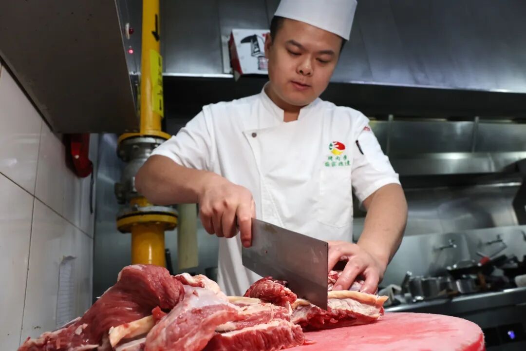 该店大厨告诉记者,烤肉季的扒肉条十分讲究,一是肉鲜,必须选用鲜嫩的牛肋条肉,肥瘦相间、纹理分明;二是火候,扒肉条需要先蒸后扒,每一道工序对烹饪时间和灶火明旺的把握都十分讲究;三是厨师师傅的烹饪功底,必须用大翻勺。扒制过程外酥里嫩,最后大火勾芡,让浓稠的芡汁裹挟着肉香包裹每一寸纹理,成就“汁明芡亮”的诱人卖相。