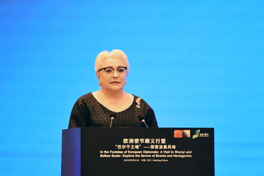 9月21日,由波黑驻华使馆和中国欧洲经济技术合作协会欧盟工作委员会共同主办的欧洲使节顺义行暨“巴尔干之魂”——探索波黑风味活动在首都国际会展中心举办。区委书记龚宗元,罗马尼亚前总理、欧中经济合作与发展理事会联席主席维奥丽卡·登奇勒,波黑驻华大使西尼沙·贝尔扬出席并致辞。区委副书记、区长崔小浩,以及来自波黑、罗马尼亚等23个国家的88名外国使节参加活动。