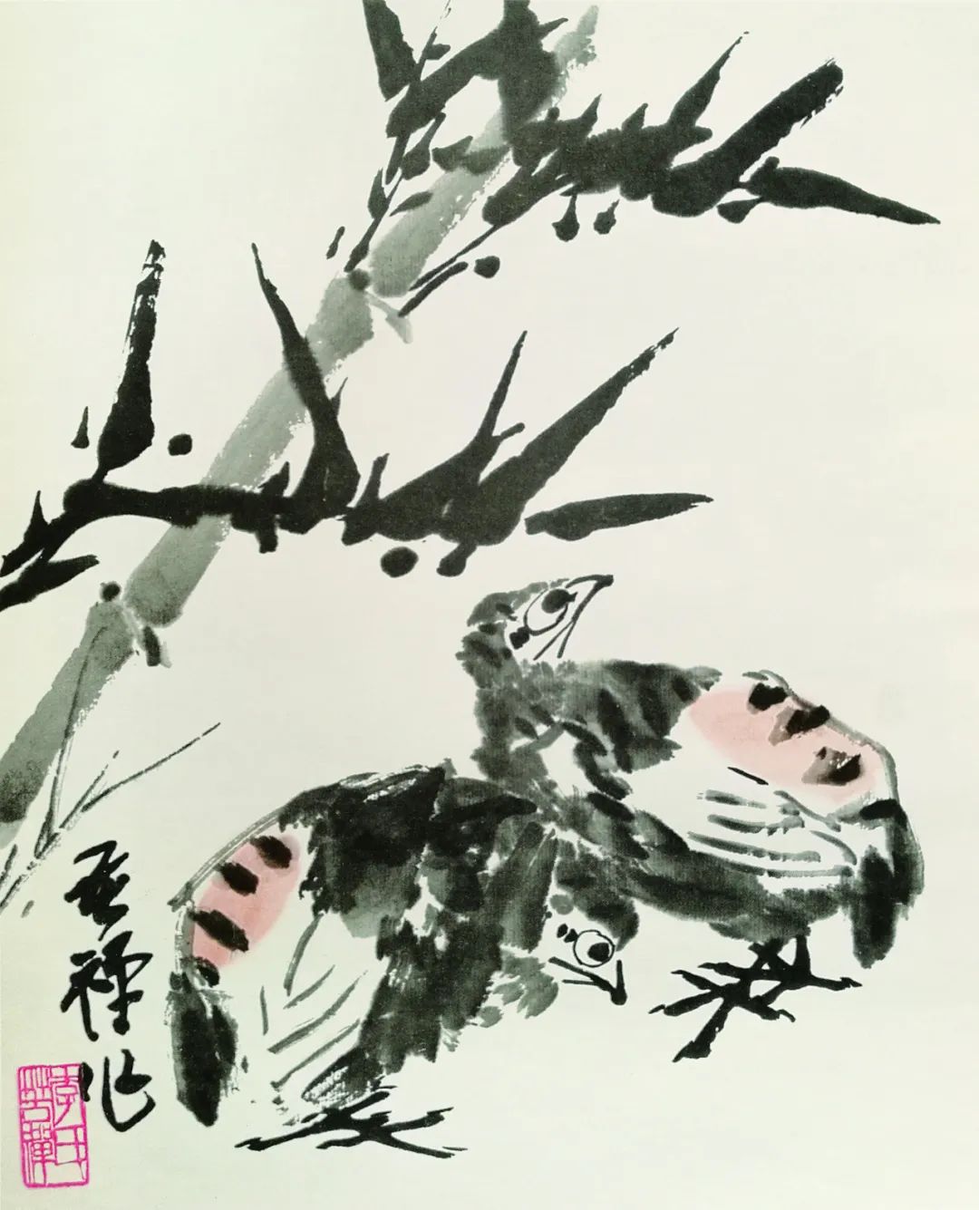 竹下双禽 李苦禅 作