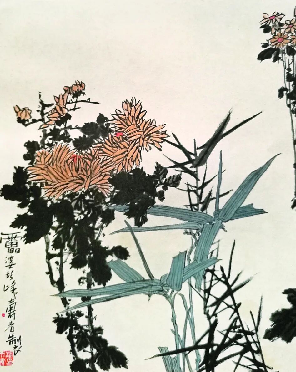 还有更重要的一点,就是南齐谢赫所提倡的“六法论”的首论“气韵生动”,这是中国画创作的主导原则,更是作品完成后的检验标准。把“气”和“韵”作为作画、检验画的最高标准,这是全世界绘画中唯中国独有的标准。这要追溯到老祖宗黄老哲学(黄帝与老子)有关“精”“气”为天下万物运行之根本的主导思想。“韵”即是高雅有节律的美。“知白守黑”的“黑”与“白”在“气韵生动”的要求下,他们在随着“气”运行的同时,要符合一定的韵律美,比如“疏密聚散”的美,比如“开合”的美,比如“升腾”的美。总之,它们在随着气运行的过程中,要展示一定的形式美和节奏感。与西画直觉印象所描绘的“空间”“透视”“色彩”构图的景象不同,中国画之所以把画面上的构图称作“章法”“布局”,是因为它要符合“气韵生动”这个纲领性的要求,要充分发挥画家在抽象韵律上的创造性。吴昌硕金石意味的花鸟画,让我们充分感受到的不仅是花鸟画的形态美,同时也从他酣畅淋漓的笔墨抒写中感受到他精神世界的强悍美。