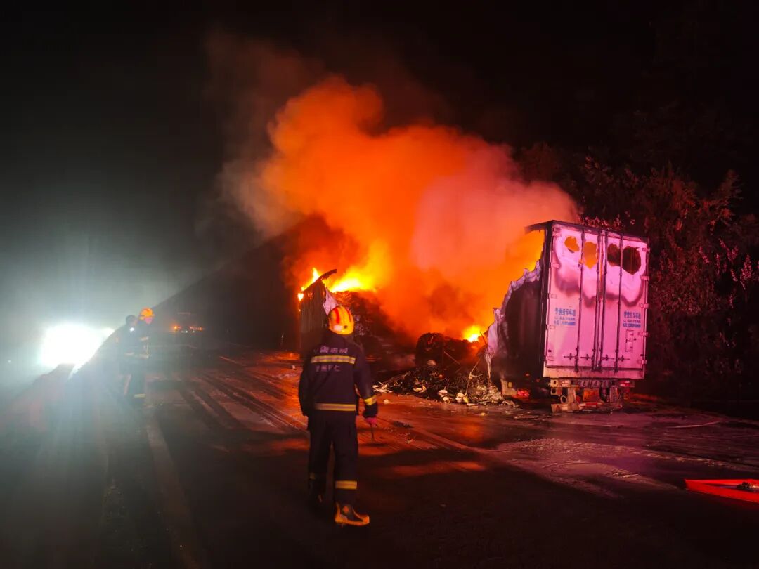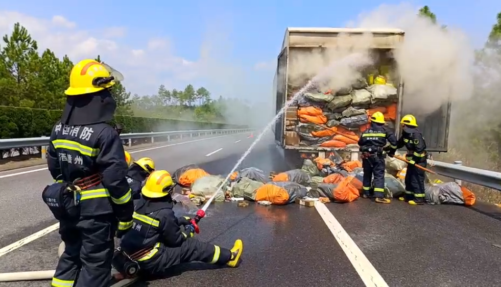 2025年3月,江西赣州,一辆载有约20吨快递包裹的货车起火,车厢冒起滚滚浓烟,现场散发着刺鼻气味。经过2个多小时的紧张救援,火势终被彻底扑灭。