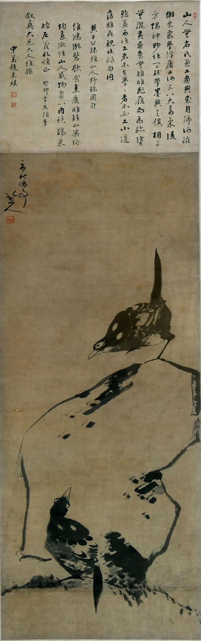 双鹊大石图 八大山人 1690年