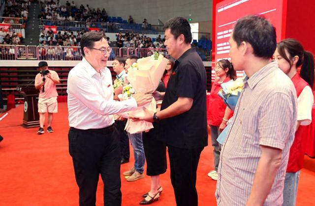 接着,学校对研究生校长特别奖获得者、研究生国家奖学金获得者、江苏省优秀博士硕士学位论文获得者及指导教师进行表彰,校领导们为获奖者代表颁发荣誉证书和献花。表彰仪式激励全体研究生向榜样学习,锐意进取、追求卓越;勉励广大教师奋力培养可堪大用、能担伟业的时代栋梁。