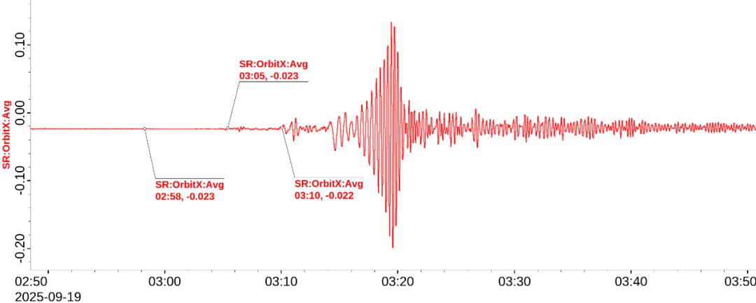 2025年9月19日,高能同步辐射光源(HEPS) 完整清晰地“捕获”了一次地震过程,展示了这台正在调试中的第四代同步辐射光源超高的束流品质和卓越的稳定性与灵敏度。