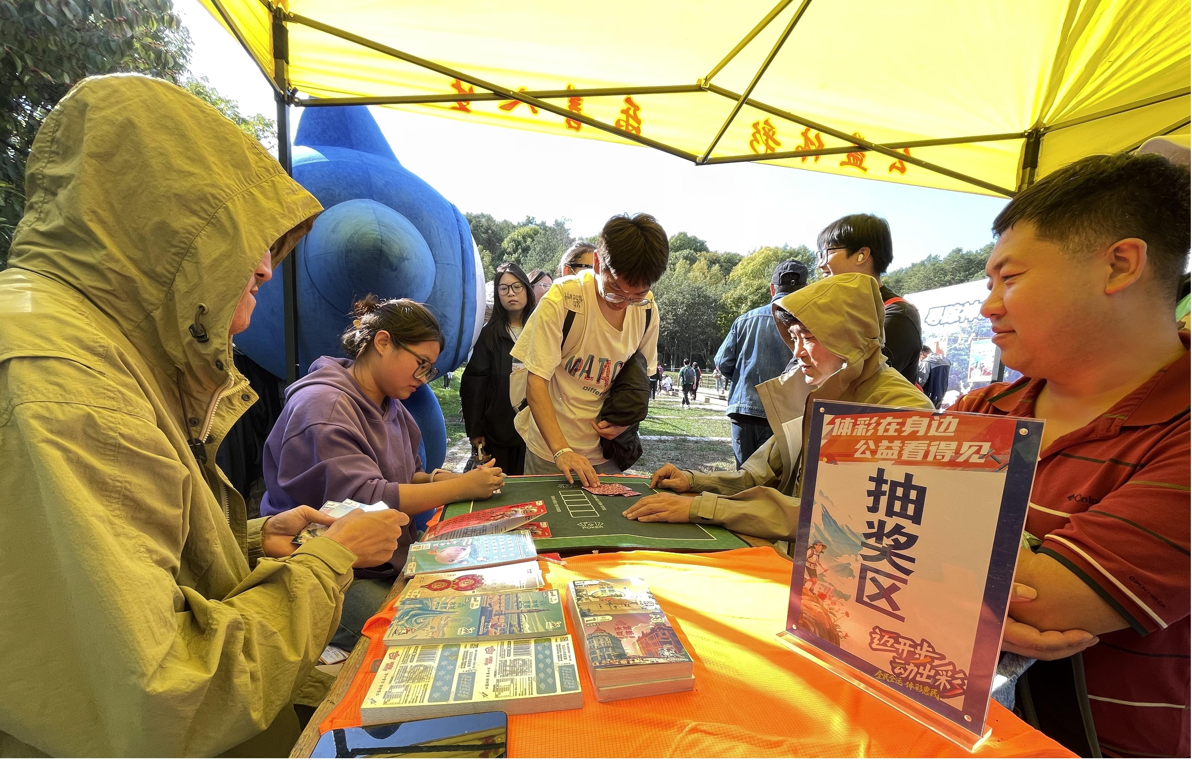 下午13时,体彩的抽奖帐篷前人声鼎沸,热闹非凡。每一位活动参与者都兴奋地排队抽取了龙江体彩提供的即开型彩票“顶呱刮”。这些彩票面值从5元到30元不等,玩法多样,趣味十足。参与者们迫不及待地刮开奖区,一试手气。不少幸运者更是惊喜地高喊自己中奖了,现场充满了欢声笑语。