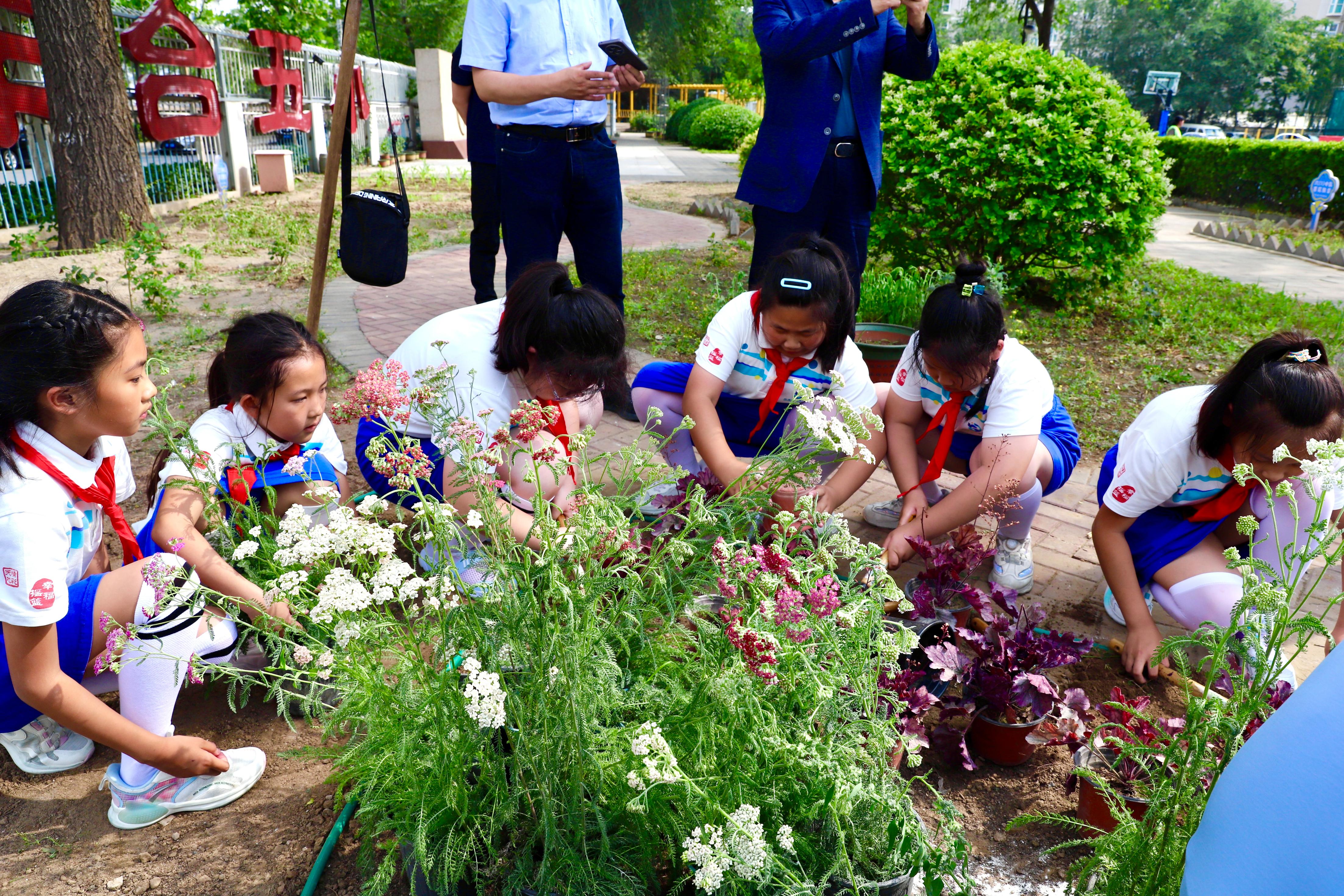 同学们将蓍草、紫菀、八宝景天等