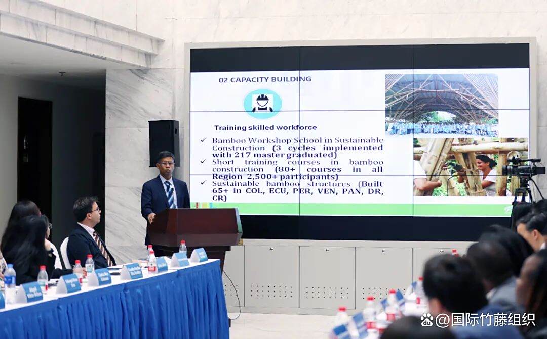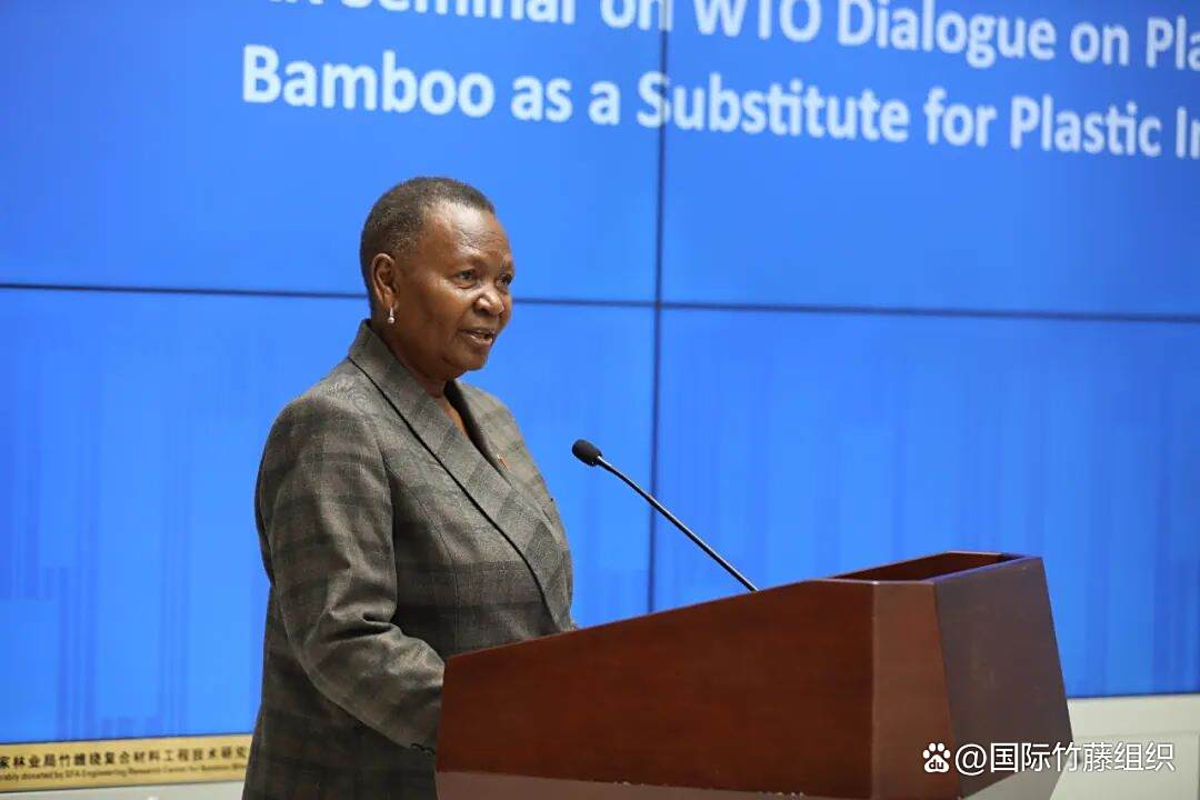达·卢斯表示,我们齐聚一堂,不仅是为了交流知识,也是为了重申我们共同致力于应对“塑料污染”这一紧迫的环境挑战。竹藤资源是可以再生、用途广泛且价格实惠的塑料替代品,能够为可持续发展、绿色增长和气候行动作出重大贡献。“以竹代塑”倡议响应全球发展潮流。感谢国际竹藤组织的真知灼见,不仅让代表团学习了竹子的潜力与价值,还让代表团更好地了解到发挥竹子潜力所需的政策框架和国际合作情况。希望今天的讨论能够激发新的想法、建立伙伴关系,并最终转化为切实的行动计划,共同迈向一个没有塑料污染的未来。
