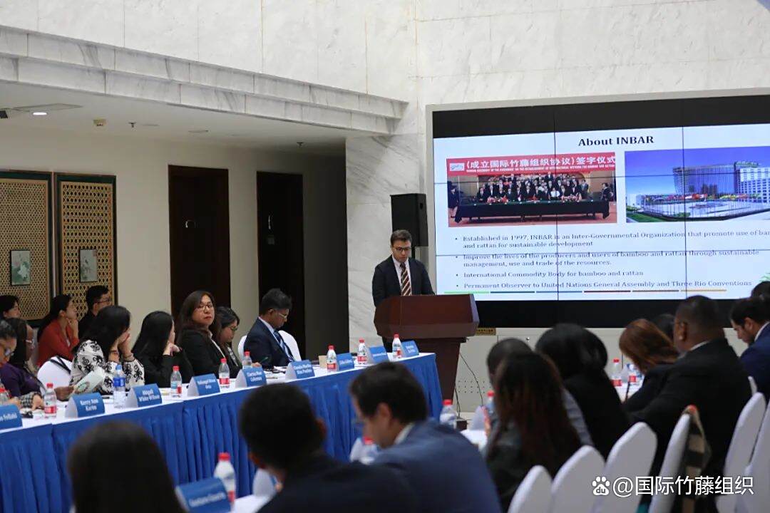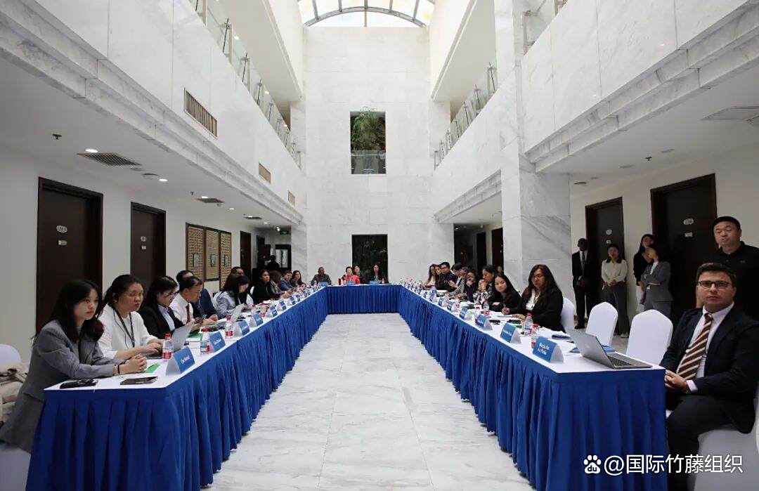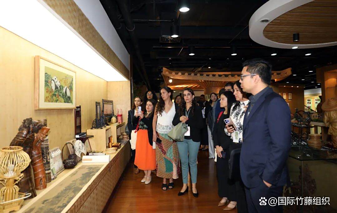 来自哥伦比亚、摩洛哥、柬埔寨、牙买加等国常驻世贸组织的官员分别就如何更好地推动以竹代塑产品的市场推广和应用、挖掘藤资源的潜力、解决竹产品原材料问题和关税问题,以及国际竹藤组织能力建设相关机会等相关问题与国际竹藤组织官员进行了交流。