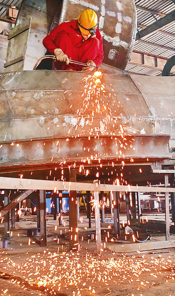 时下,在无棣津滨船舶重工有限公司车间,工人们正严格遵守安全规程,熟练地进行焊接、组装等工序。近年来,该企业积极应对市场变化,不断加大技术创新投入,提升船舶设计水平和建造能力,产品竞争力持续增强。目前,明年上半年订单已排满。