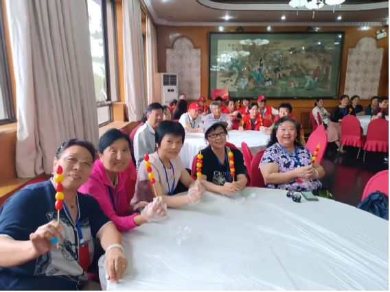 休养期间,红歌比赛与非遗小课堂掀起热潮。老人们利用休息时间排练,歌声与掌声此起彼伏;非遗体验环节,大家跟随师傅制作冰糖葫芦,晶莹的果实承载着岁月记忆,方叔叔举着成品拍照时笑称“仿佛回到了童年”。