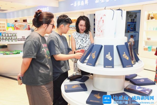 若觉试吃意犹未尽,不妨移步至海洋食品展销中心。这里集品尝、简餐、销售于一体,石岛鱿鱼、即食鲍鱼、脆蜇头、海鲜罐头等200多种商品琳琅满目。游客可现场下单将“威海味道”打包回家,也可选择即时烹饪、加热品尝,在小空间里体验“一桌最海鲜”的畅快与满足。