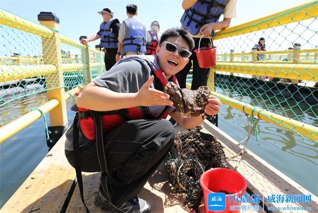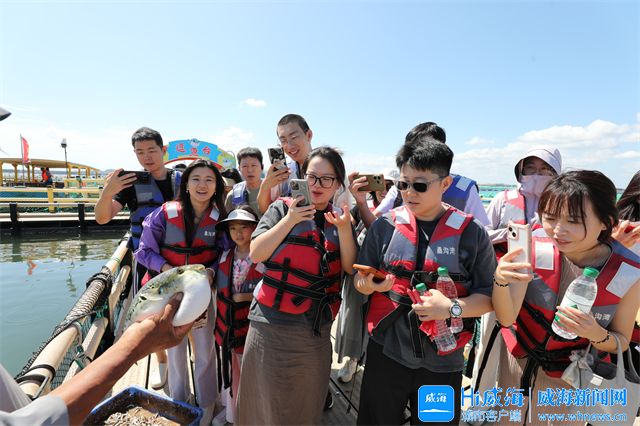 在这里,采风团一行乘船出海观光、抛撒食物吸引海鸥环绕、参观原生态海鲜养殖区、体验逗鱼乐趣、亲手采摘贝类……一系列互动让大家沉浸式感受渔民日常,触摸海洋文化鲜活脉搏,直观感受“向海而生”的产业韧性。