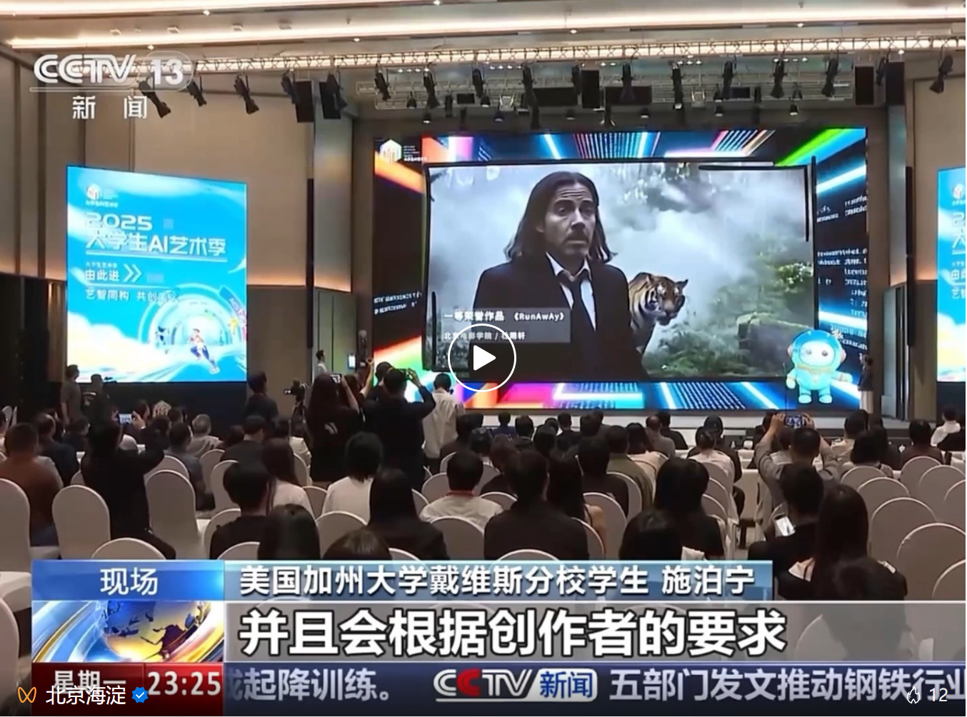 一场以“艺智同构,共创美学”为主题的2025大学生AI艺术季,这个秋天成功“火出圈”。从《新闻直播间》多时段预热,到《新闻联播》报道,再到《24小时》解读,央视多个栏目接连聚焦,点亮这场青春与科技交融的创意盛宴。