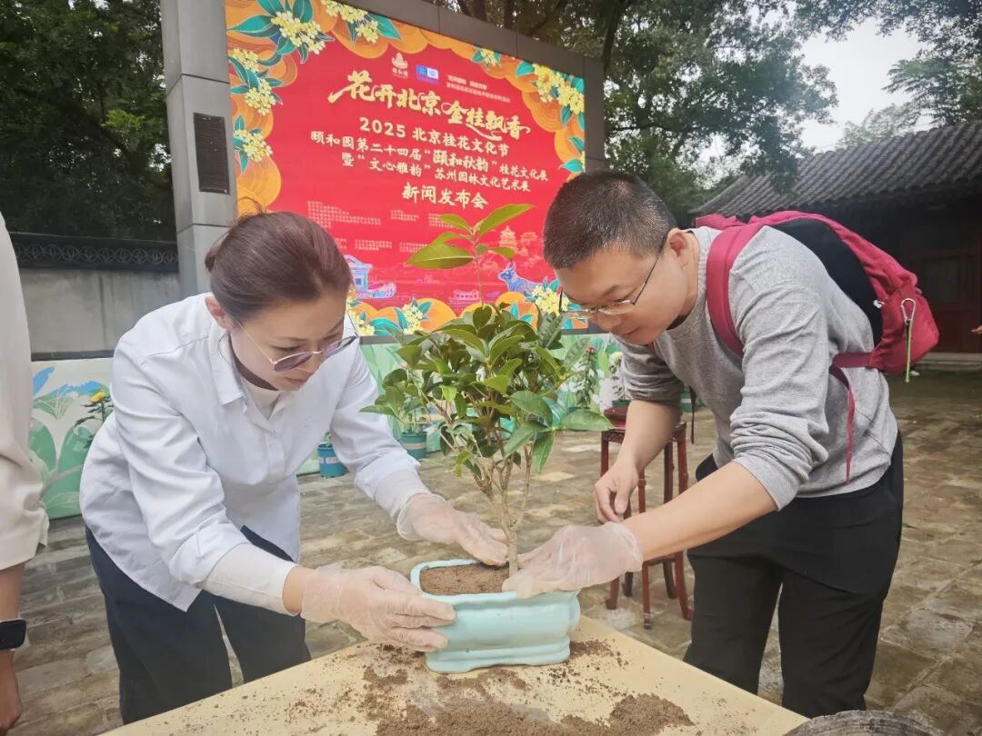 在“桂植方寸”生态盆栽种植活动中,颐和园百年桂花专业养护专家的指导让游客们收获满满。大家捧着小巧的桂花幼苗,仔细辨认根系与枝叶特征,听专家讲解不同季节的浇水频率、土壤配比,还学会了如何通过修剪塑造植株形态。原本对“养桂”一窍不通的游客,不仅掌握了科学养护知识,更从桂花造景的艺术美学中,读懂了这一植物品种独有的生态之美,亲手栽种的盆栽也成了“能带回家的独特记忆”。