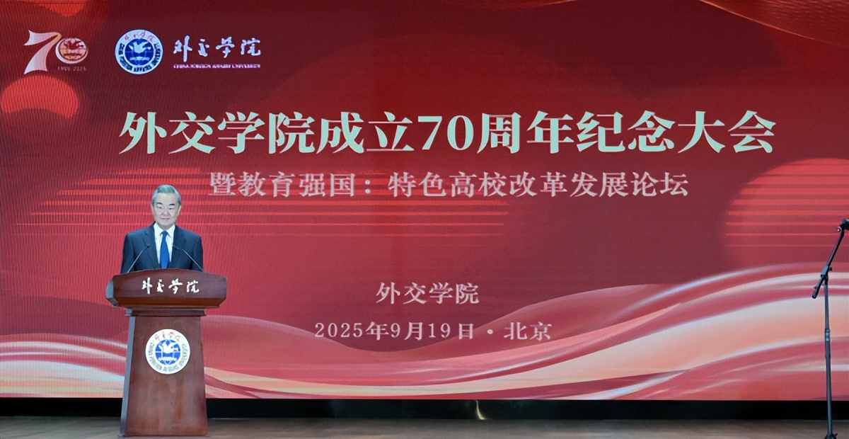 2025年9月19日,外交学院在京举行建校70周年纪念大会。中共中央政治局委员、外交部长王毅出席并致辞。