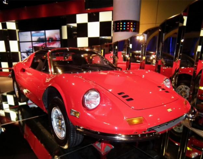 在汽博馆四层展区的一角,我停住了脚步。眼前是一辆红色的跑车——法拉利迪诺246 GTS,它线条流畅,姿态低伏, 见到它的那一刻,时光仿佛骤然倒流。