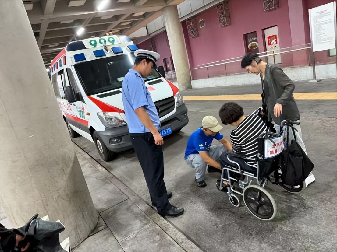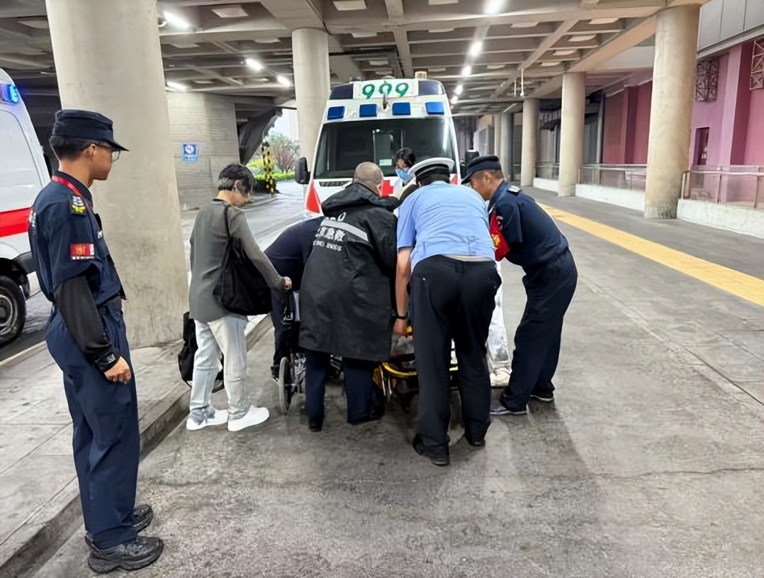 几分钟后,999急救人员抵达现场,对旅客进行了初步检查和处理。约十分钟后,120急救车也到达现场。站区辅警和保安积极配合医护人员,小心翼翼地将旅客抬上担架,护送其登上120急救车,前往医院接受进一步治疗。急救车离开前,旅客家属连声向站区工作人员表示感谢:“多亏你们及时帮忙!”